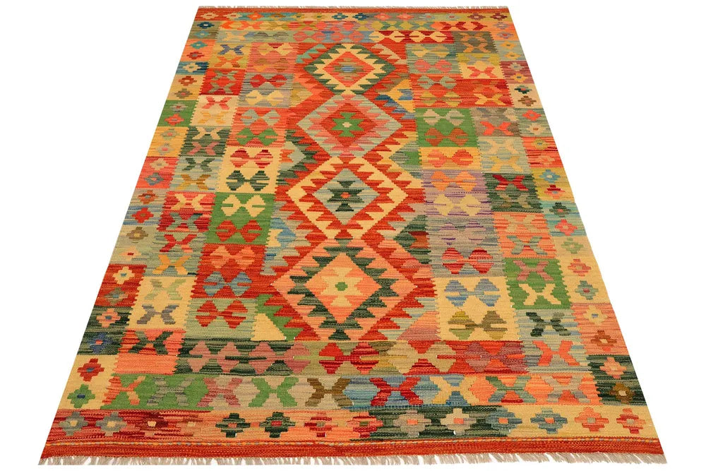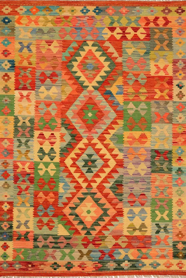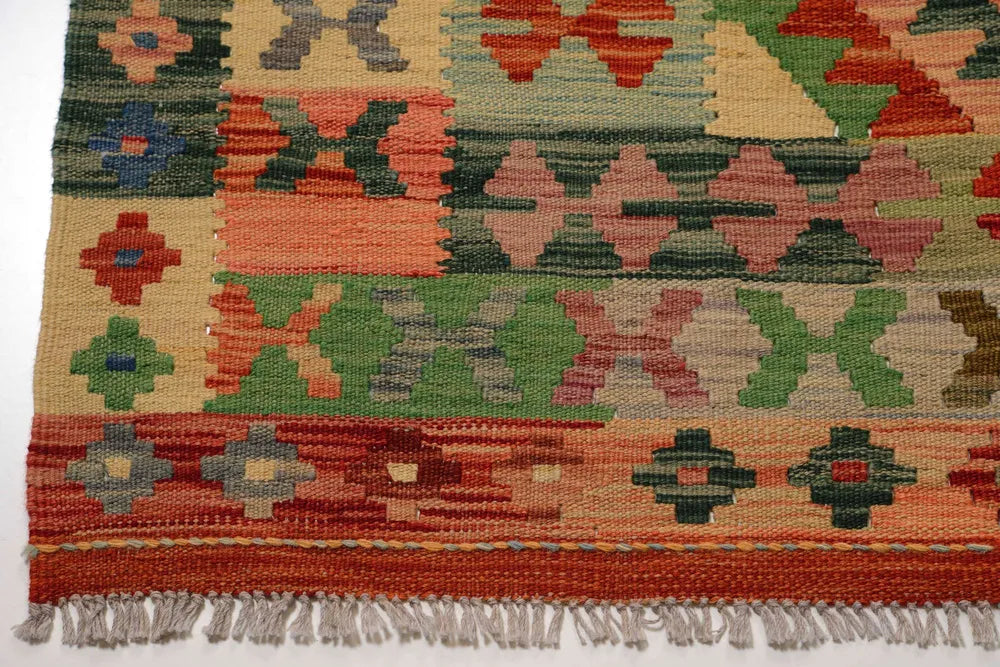 A Masterpiece of Afghan Craftsmanship with Caucasian Inspiration. Kelim Chobi rugs are a brilliant example of traditional Afghan craftsmanship, combining both quality and aesthetic finesse. These rugs are uniquely handwoven in Afghanistan and carry a rich history of craftsmanship, where traditional techniques have been passed down through generations. What makes Kelim Chobi rugs particularly remarkable is their distinct design, heavily influenced by Caucasian patterns. The geometric shapes and symmetrical patterns, typical of Caucasian rugs, give Kelim Chobi rugs their unique and timeless character. The colors used in Kelim Chobi rugs are often subdued and natural, providing them with an elegant and sophisticated look. These colors are derived from natural dyes, which not only provide a durable and authentic color palette but also reflect a deep respect for nature and traditional methods. Each Kelim Chobi rug is handwoven with the utmost care and precision, ensuring high quality and durability. The rugs are flat-woven, giving them a smooth surface and making them both practical and easy to maintain. Thanks to their combination of Afghan craftsmanship and Caucasian design, Kelim Chobi rugs are a popular choice for those looking for a beautiful and timeless decorative element that can enhance any room. These rugs are not only practical floor coverings but also artworks that tell a story of tradition and culture. If you are looking for a rug that combines traditional craftsmanship with stylish design, Kelim Chobi rugs are an excellent choice. Their timeless beauty and durable quality make them a perfect investment for your home.