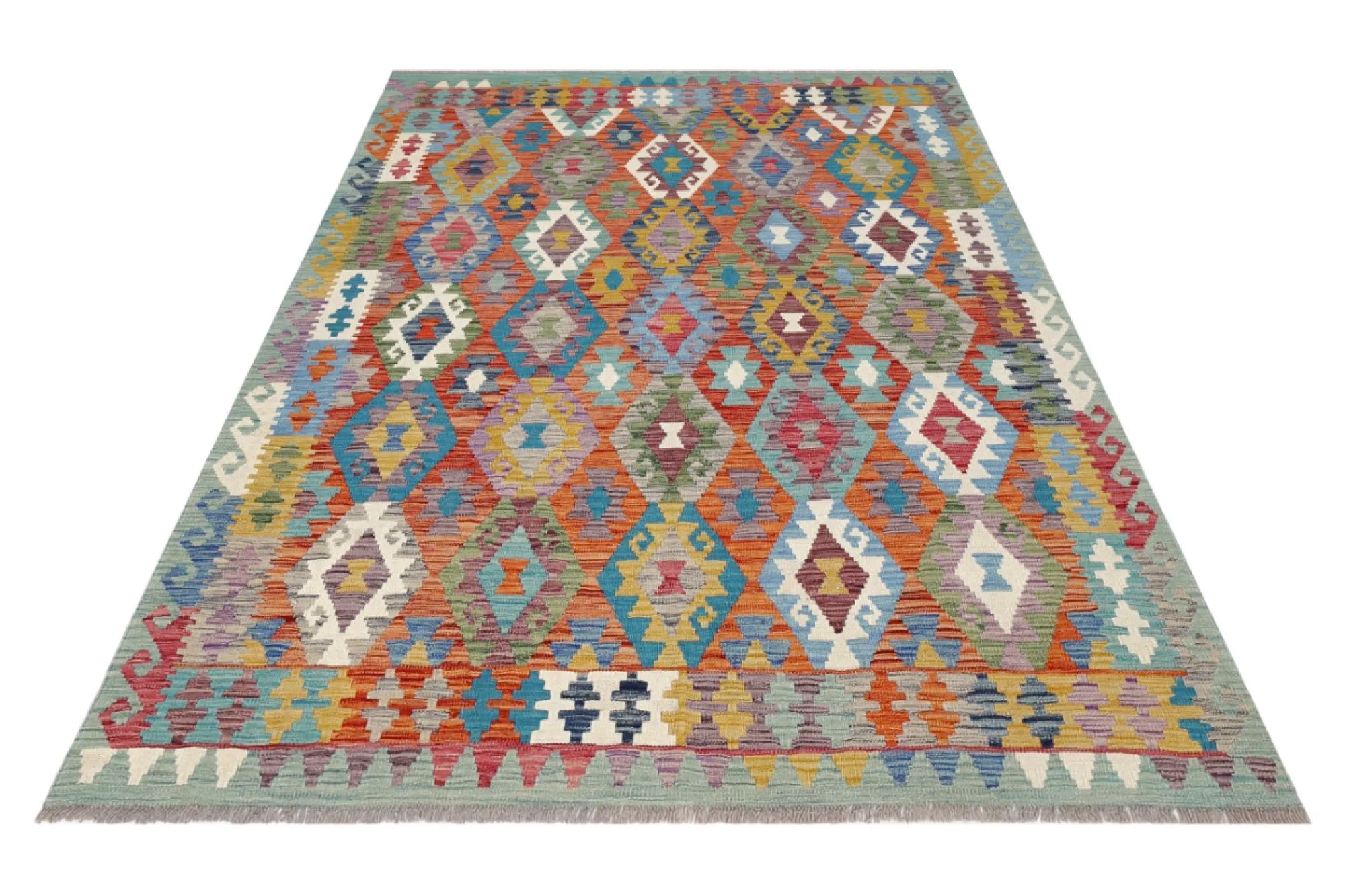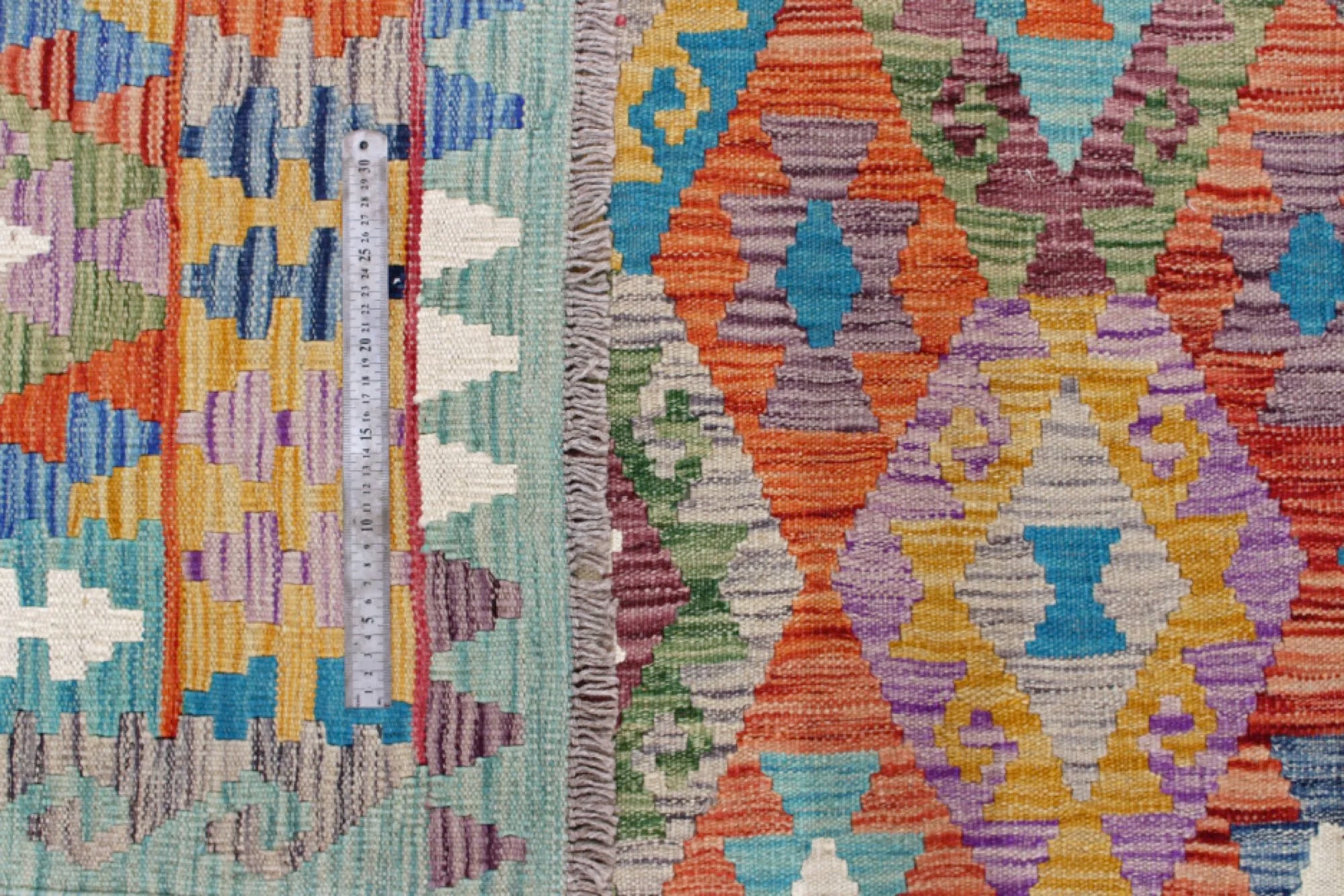 A Masterpiece of Afghan Craftsmanship with Caucasian Inspiration. Kelim Chobi rugs are a brilliant e x ample of traditional Afghan craftsmanship, combining both quality and aesthetic finesse. These rugs are uniquely handwoven in Afghanistan and carry a rich history of craftsmanship, where traditional techniques have been passed down through generations. What makes Kelim Chobi rugs particularly remarkable is their distinct design, heavily influenced by Caucasian patterns. The geometric shapes and symmetrical patterns, typical of Caucasian rugs, give Kelim Chobi rugs their unique and timeless character. The colors used in Kelim Chobi rugs are often subdued and natural, providing them with an elegant and sophisticated look. These colors are derived from natural dyes, which not only provide a durable and authentic color palette but also reflect a deep respect for nature and traditional methods. Each Kelim Chobi rug is handwoven with the utmost care and precision, ensuring high quality and durability. The rugs are flat-woven, giving them a smooth surface and making them both practical and easy to maintain. Thanks to their combination of Afghan craftsmanship and Caucasian design, Kelim Chobi rugs are a popular choice for those looking for a beautiful and timeless decorative element that can enhance any room. These rugs are not only practical floor coverings but also artworks that tell a story of tradition and culture. If you are looking for a rug that combines traditional craftsmanship with stylish design, Kelim Chobi rugs are an e x cellent choice. Their timeless beauty and durable quality make them a perfect investment for your home.