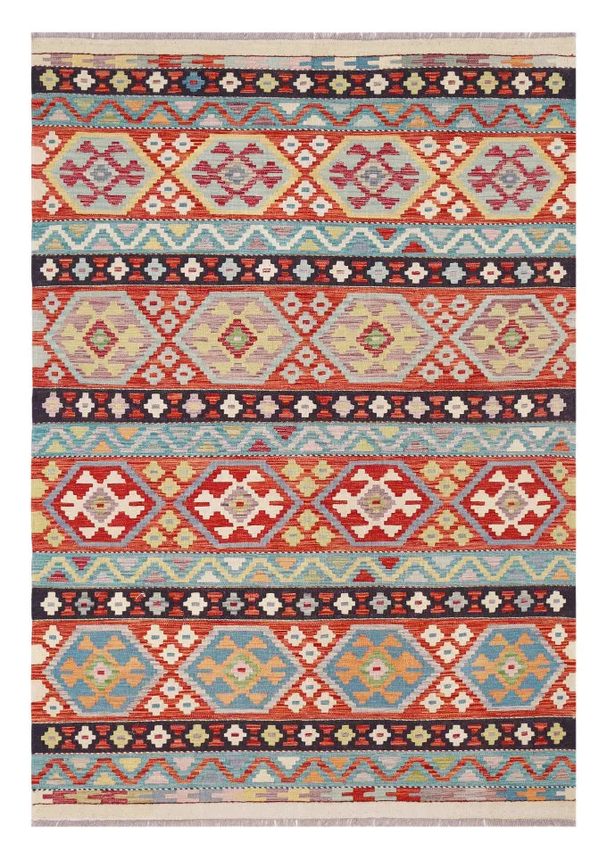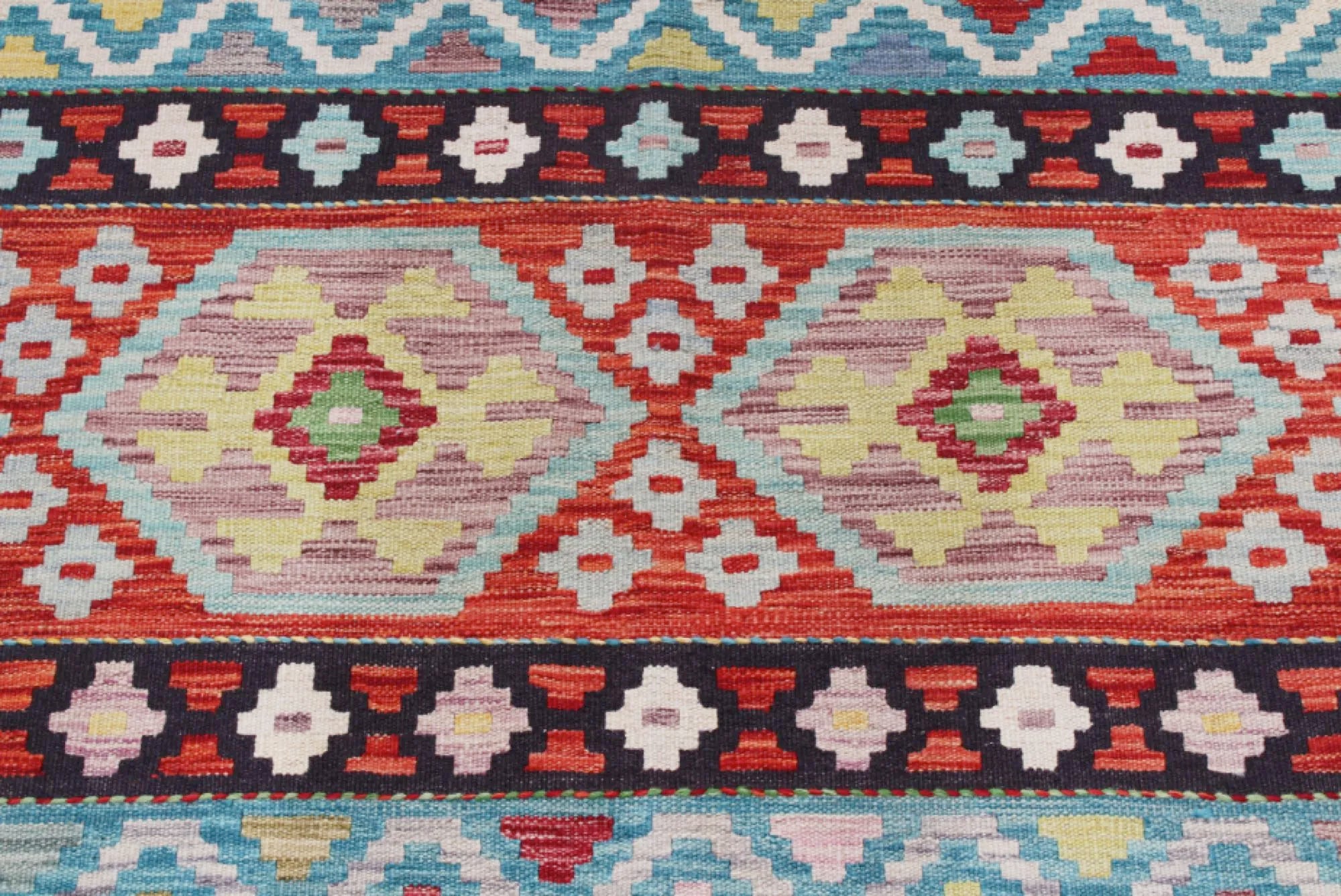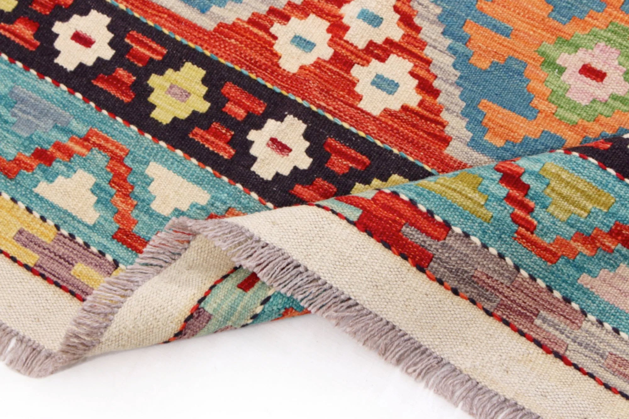 A Masterpiece of Afghan Craftsmanship with Caucasian Inspiration. Kelim Chobi rugs are a brilliant e x ample of traditional Afghan craftsmanship, combining both quality and aesthetic finesse. These rugs are uniquely handwoven in Afghanistan and carry a rich history of craftsmanship, where traditional techniques have been passed down through generations. What makes Kelim Chobi rugs particularly remarkable is their distinct design, heavily influenced by Caucasian patterns. The geometric shapes and symmetrical patterns, typical of Caucasian rugs, give Kelim Chobi rugs their unique and timeless character. The colors used in Kelim Chobi rugs are often subdued and natural, providing them with an elegant and sophisticated look. These colors are derived from natural dyes, which not only provide a durable and authentic color palette but also reflect a deep respect for nature and traditional methods. Each Kelim Chobi rug is handwoven with the utmost care and precision, ensuring high quality and durability. The rugs are flat-woven, giving them a smooth surface and making them both practical and easy to maintain. Thanks to their combination of Afghan craftsmanship and Caucasian design, Kelim Chobi rugs are a popular choice for those looking for a beautiful and timeless decorative element that can enhance any room. These rugs are not only practical floor coverings but also artworks that tell a story of tradition and culture. If you are looking for a rug that combines traditional craftsmanship with stylish design, Kelim Chobi rugs are an e x cellent choice. Their timeless beauty and durable quality make them a perfect investment for your home.
