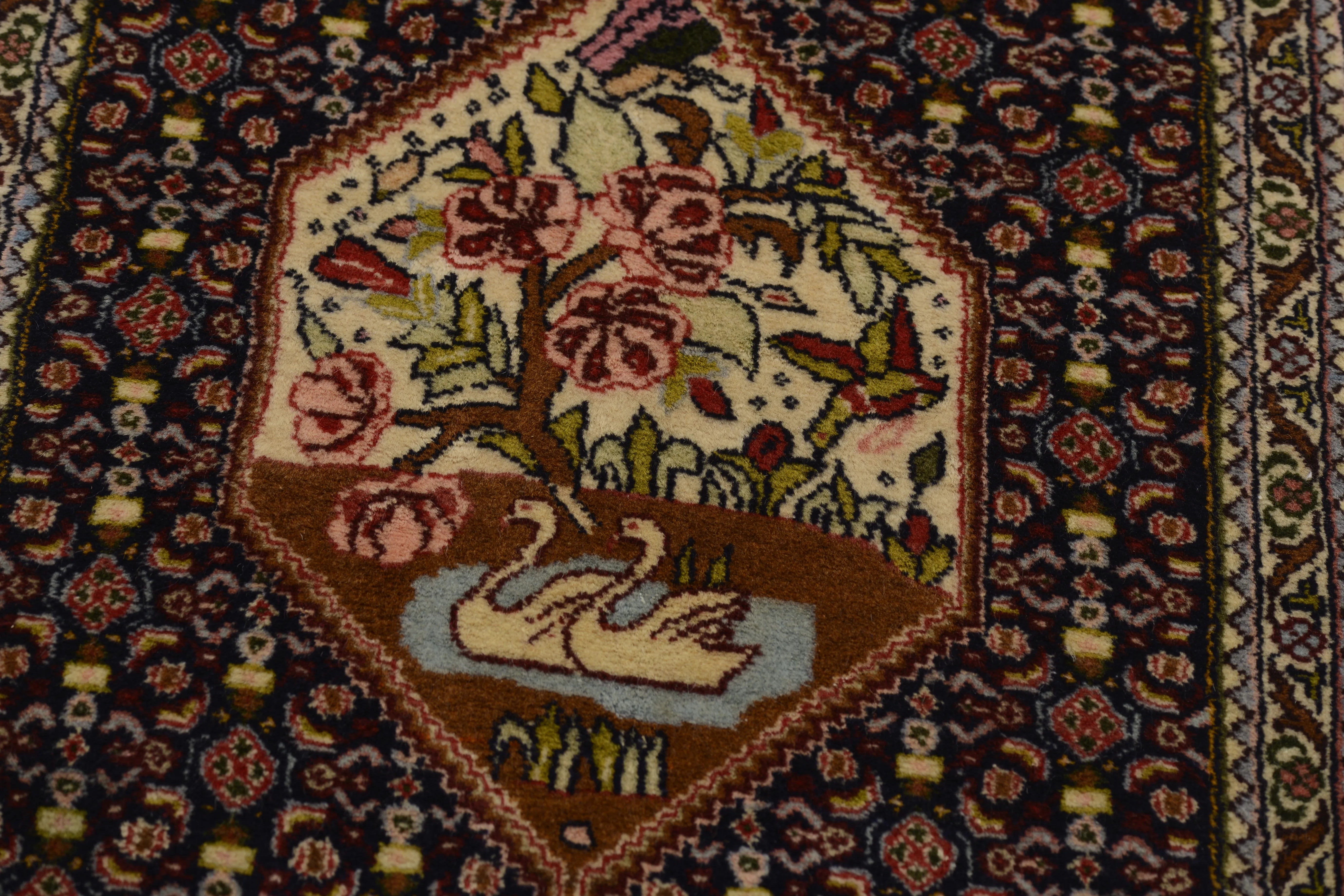 Sanneh rugs are hand-knotted rugs made in the city of Sanandaj, which is the capital of the Kurdistan province in northwestern Persia. These rugs are known for their high quality and skilled craftsmanship, which reflects the region's rich cultural heritage and traditions. Sanandaj rugs are usually woven from the finest wool, which gives them a soft and durable surface. Sometimes they may also contain silk threads to add e x tra luster and elegance to the patterns. The production of these rugs involves a meticulous hand-knotting technique, performed by skilled craftsmen who have inherited their skills and knowledge through generations. Typical patterns on Sanandaj rugs include traditional geometric figures, flowers, medallions, and sometimes stylized animal motifs. The patterns are usually symmetrical and balanced, giving the rugs an aesthetically pleasing character. The color palette varies from warm earth tones to deep blues, greens, and reds, reflecting the region's nature and traditional color scheme. Sanandaj rugs are known for their elegance and high craftsmanship quality. Their traditional style suits both traditional and modern interior styles and makes them popular choices for homes and collections. On the international market, Sanandaj rugs are valued for their authenticity and beauty. They are often used as floor rugs in homes, but their artistic value also makes them sought-after collectibles and investment opportunities.
