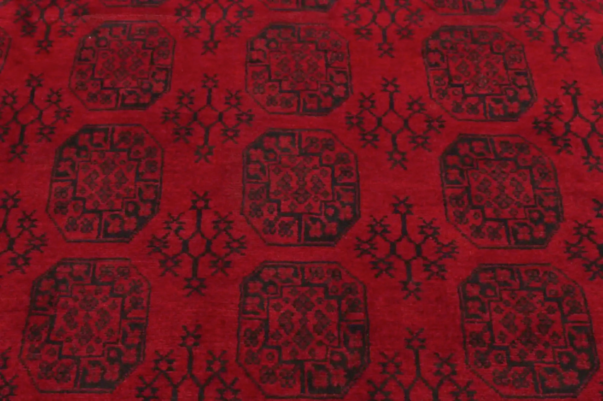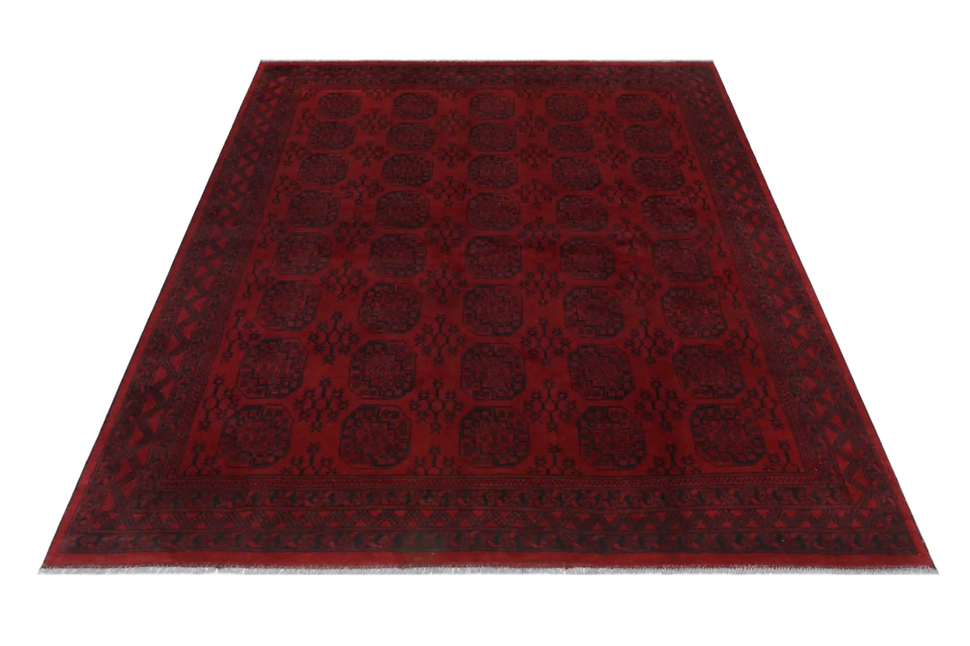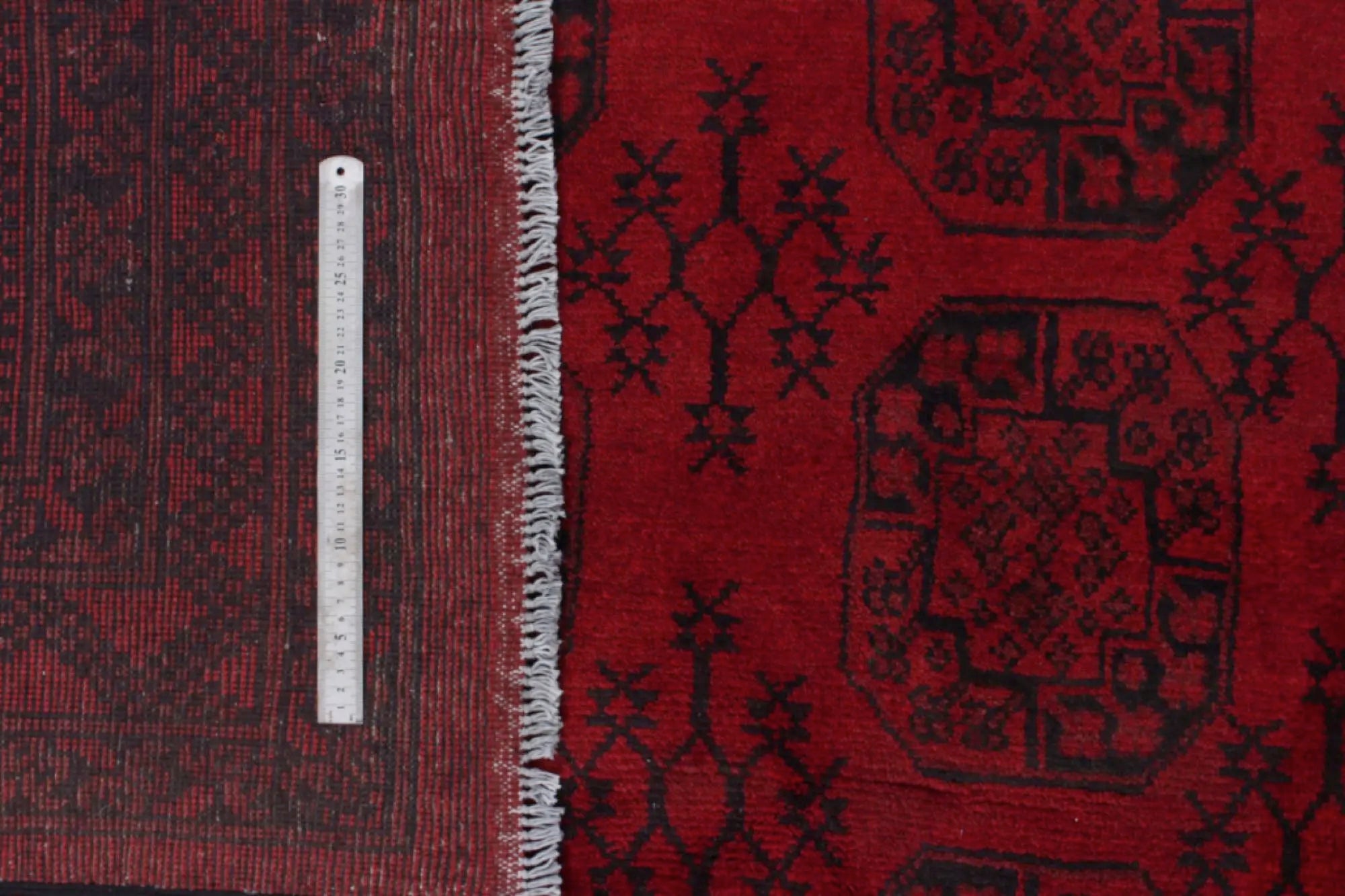 Discover this exquisite hand-knotted Akche rug from Afghanistan, crafted in rich, deep red and black tones that bring warmth and elegance to any interior. Made from 100% pure wool, including the fringes, it contains no synthetic materials, giving it a naturally soft, durable, and authentic feel. The traditional “elephant foot” motif, characteristic of Akche rugs, adds a timeless and culturally rich expression. A perfect choice for anyone seeking a rug that unites craftsmanship, character, and classic oriental beauty.