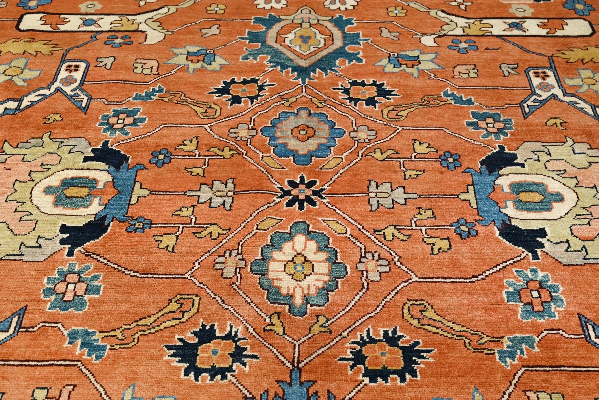 The Sarapi rug combines the best of tradition and modernity. Inspired by the classic Afghan Ziegler rugs and the iconic Persian Heriz designs, this hand-knotted wool rug offers a unique style with brighter, cheerful colors that enliven any space. Each Sarapi rug is meticulously handcrafted by skilled artisans, using premium-quality wool for a soft yet durable finish. Its intricate patterns and harmonious color palette make it a perfect addition to both classic and contemporary interiors. With the versatility of the Sarapi rug, you can create a warm and inviting atmosphere in your living room, dining area, or bedroom. It is as beautiful as it is practical, ideal for anyone who values high-quality craftsmanship and sophisticated design. Bring a touch of elegance and vibrant color to your home with a Sarapi rug – an investment in both style and comfort!