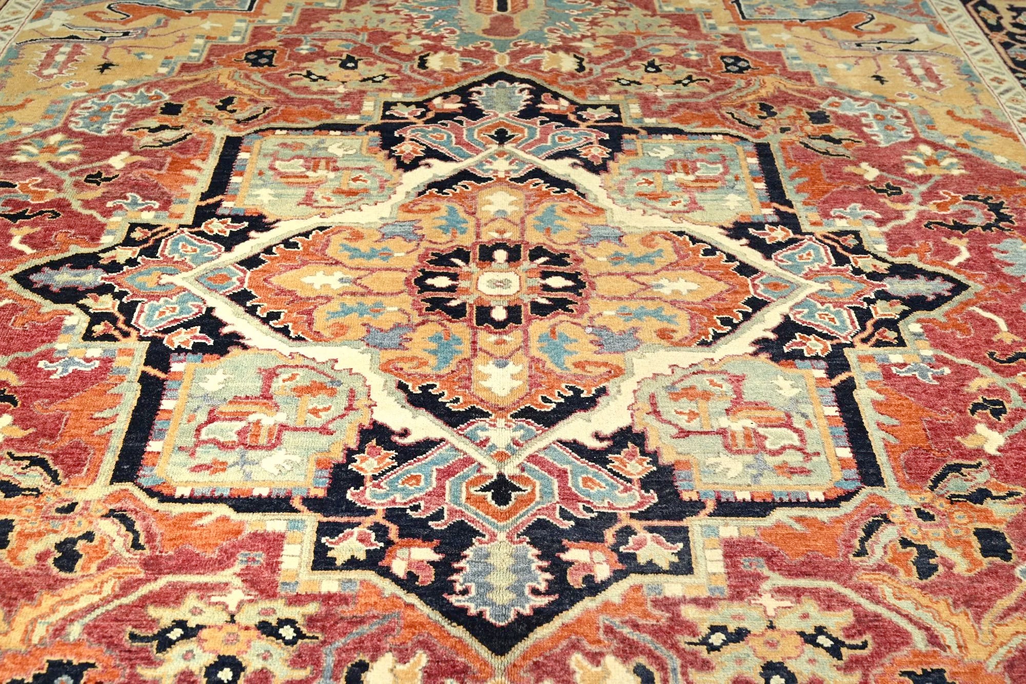 The Sarapi rug combines the best of tradition and modernity. Inspired by the classic Afghan Ziegler rugs and the iconic Persian Heriz designs, this hand-knotted wool rug offers a unique style with brighter, cheerful colors that enliven any space. Each Sarapi rug is meticulously handcrafted by skilled artisans, using premium-quality wool for a soft yet durable finish. Its intricate patterns and harmonious color palette make it a perfect addition to both classic and contemporary interiors. With the versatility of the Sarapi rug, you can create a warm and inviting atmosphere in your living room, dining area, or bedroom. It is as beautiful as it is practical, ideal for anyone who values high-quality craftsmanship and sophisticated design. Bring a touch of elegance and vibrant color to your home with a Sarapi rug – an investment in both style and comfort!