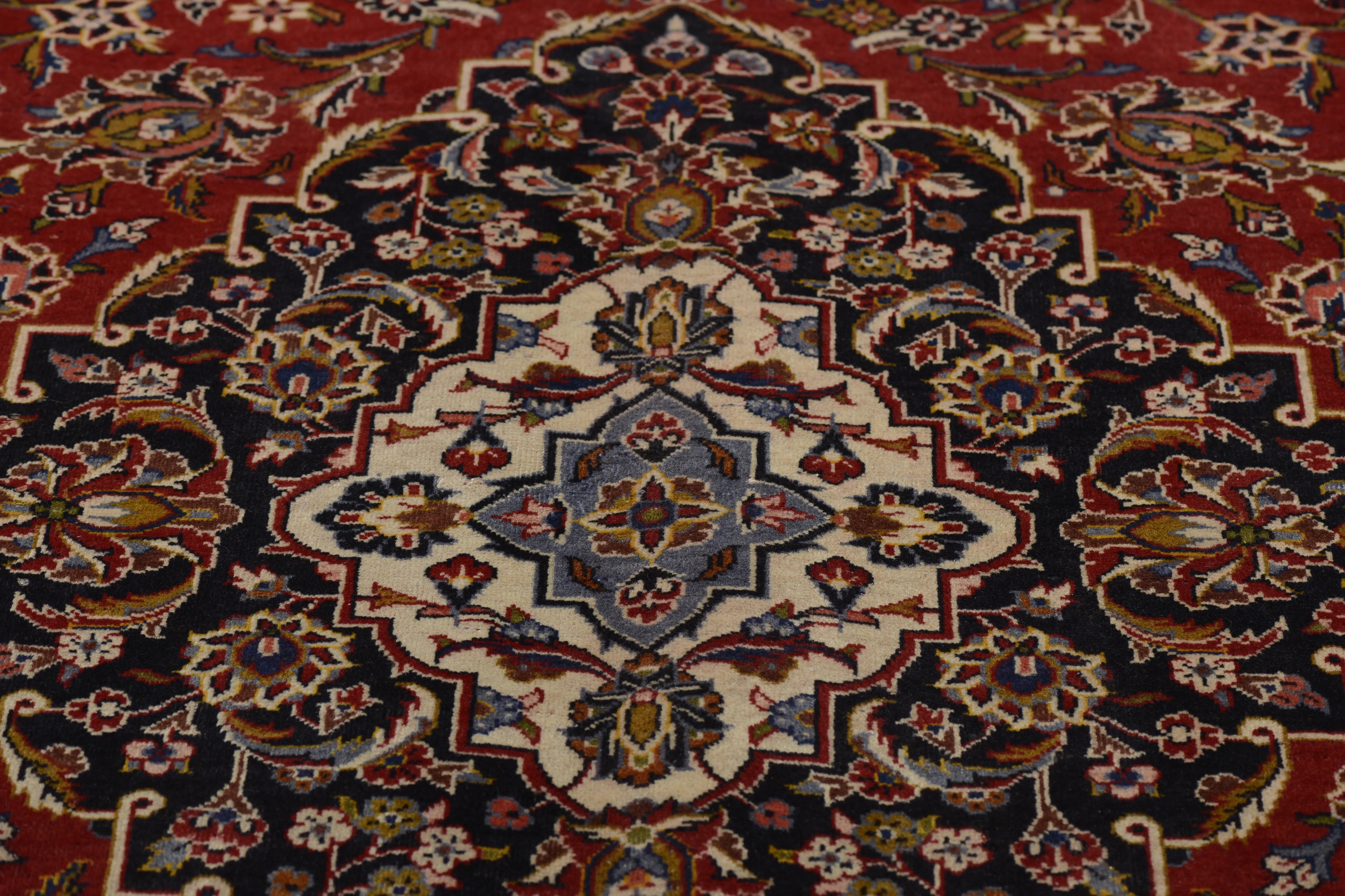 Kashan (or Keshan) rugs are truly an e x ample of the finest in Persian rug artistry. They offer a combination of beauty, durability, and cultural value. If you're considering purchasing a Kashan rug, you can be sure that you're investing in a piece of Iranian culture and history that will bring joy and beauty for many years to come. Kashan rugs are hand-knotted with great precision and adhere to traditional weaving techniques that have developed over centuries. The rugs are known for their high knot density and intricate details. Kashan rugs often feature comple x patterns including large central medallions, flowers, arabesques, and stylized plant motifs. The patterns are often symmetrical and have a harmonious design that reflects traditional Persian art. The most commonly used colors in Kashan rugs are red, blue, ivory, and beige. These colors are often combined to create a rich and contrasting palette. The colors are traditionally made with natural dyes, giving them their deep and lasting appearance. Most Kashan rugs are made from high-quality wool, which provides a soft and durable surface. Some of the more e x clusive ones may also contain silk to add e x tra luster and richness in detail. The base of the rugs is usually made of cotton, which provides stability and structure to the rug. Kashan rugs are known for their high knot density, which makes them dense and durable. This high knot density allows for the creation of very detailed patterns and contributes to the rug's longevity. Kashan rugs are available in a variety of sizes, from small prayer rugs to large room-sized rugs. They are popular both for home use and as decorative items in public spaces. Kashan rugs are an important part of Iran's cultural heritage and represent a long tradition of artistic e x pression and craftsmanship. They are often an e x pression of local culture and aesthetics and are considered a form of artwork. Many Kashan rugs have historically been made for royal courts and wealthy merchants, which marks them as symbols of lu x ury and status. They are still highly sought after both as collectibles and for decoration in e x clusive settings. Kashan rugs are often e x pensive due to their high quality and aesthetic value.