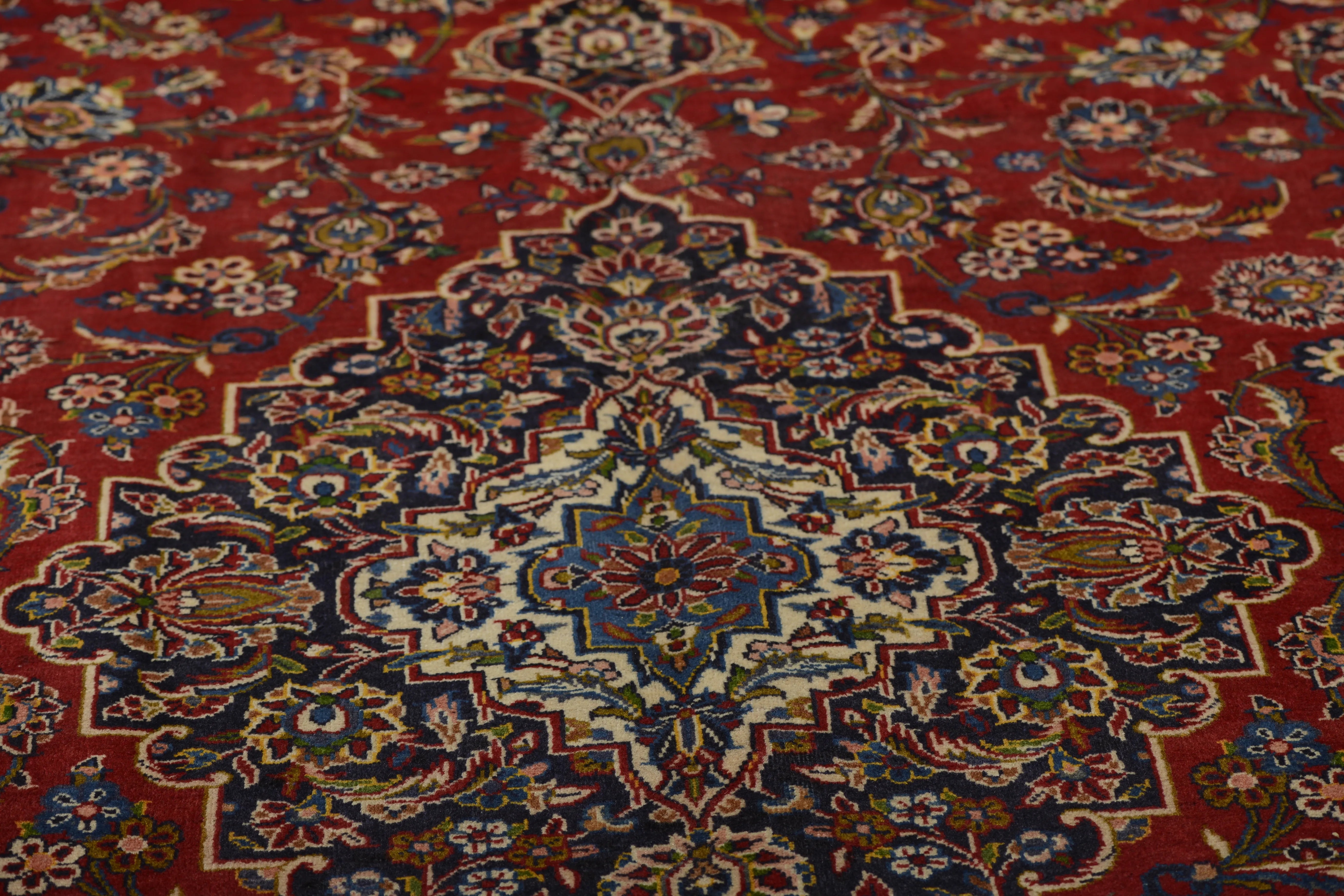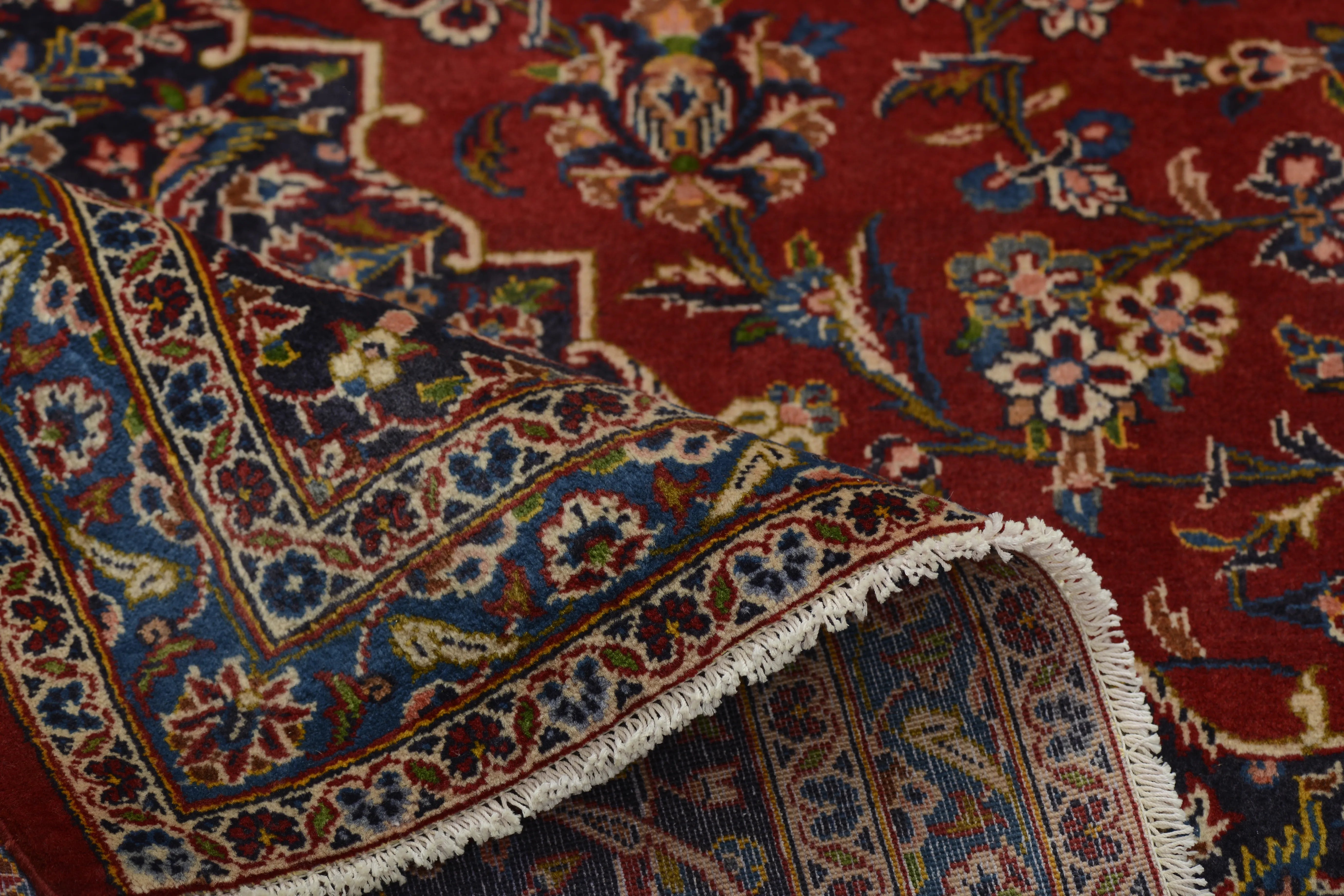 Kashan (or Keshan) rugs are truly an e x ample of the finest in Persian rug artistry. They offer a combination of beauty, durability, and cultural value. If you're considering purchasing a Kashan rug, you can be sure that you're investing in a piece of Iranian culture and history that will bring joy and beauty for many years to come. Kashan rugs are hand-knotted with great precision and adhere to traditional weaving techniques that have developed over centuries. The rugs are known for their high knot density and intricate details. Kashan rugs often feature comple x patterns including large central medallions, flowers, arabesques, and stylized plant motifs. The patterns are often symmetrical and have a harmonious design that reflects traditional Persian art. The most commonly used colors in Kashan rugs are red, blue, ivory, and beige. These colors are often combined to create a rich and contrasting palette. The colors are traditionally made with natural dyes, giving them their deep and lasting appearance. Most Kashan rugs are made from high-quality wool, which provides a soft and durable surface. Some of the more e x clusive ones may also contain silk to add e x tra luster and richness in detail. The base of the rugs is usually made of cotton, which provides stability and structure to the rug. Kashan rugs are known for their high knot density, which makes them dense and durable. This high knot density allows for the creation of very detailed patterns and contributes to the rug's longevity. Kashan rugs are available in a variety of sizes, from small prayer rugs to large room-sized rugs. They are popular both for home use and as decorative items in public spaces. Kashan rugs are an important part of Iran's cultural heritage and represent a long tradition of artistic e x pression and craftsmanship. They are often an e x pression of local culture and aesthetics and are considered a form of artwork. Many Kashan rugs have historically been made for royal courts and wealthy merchants, which marks them as symbols of lu x ury and status. They are still highly sought after both as collectibles and for decoration in e x clusive settings. Kashan rugs are often e x pensive due to their high quality and aesthetic value.