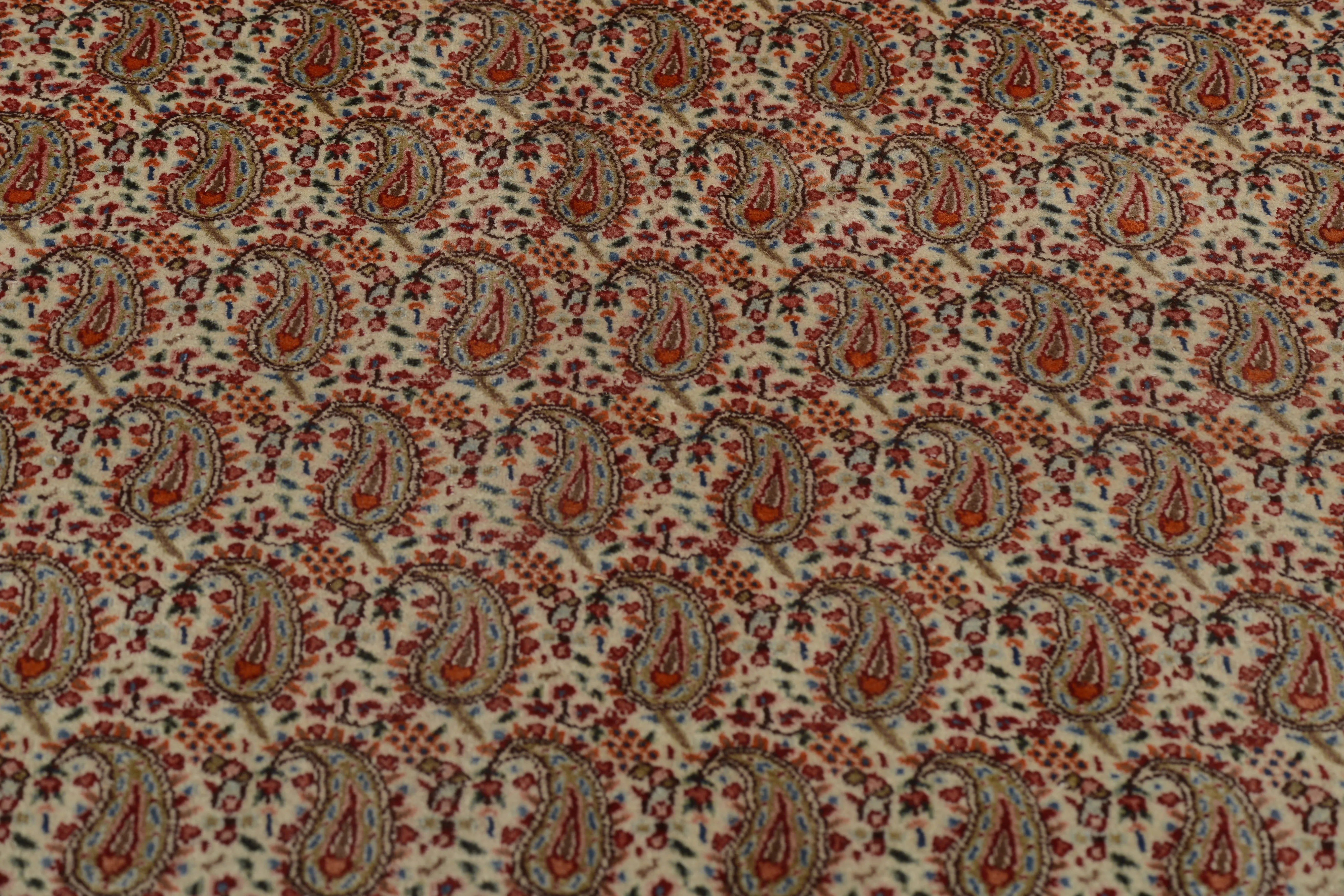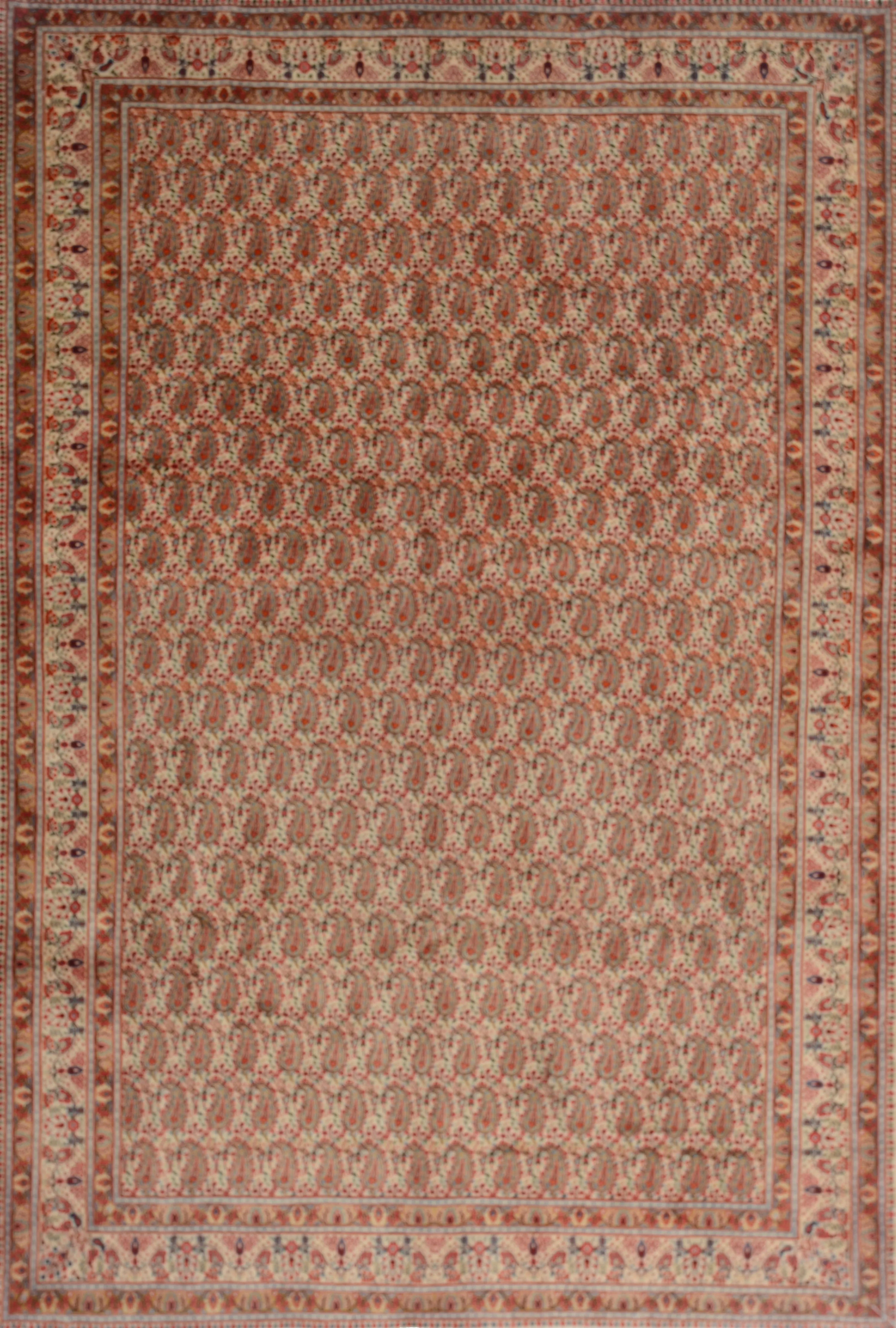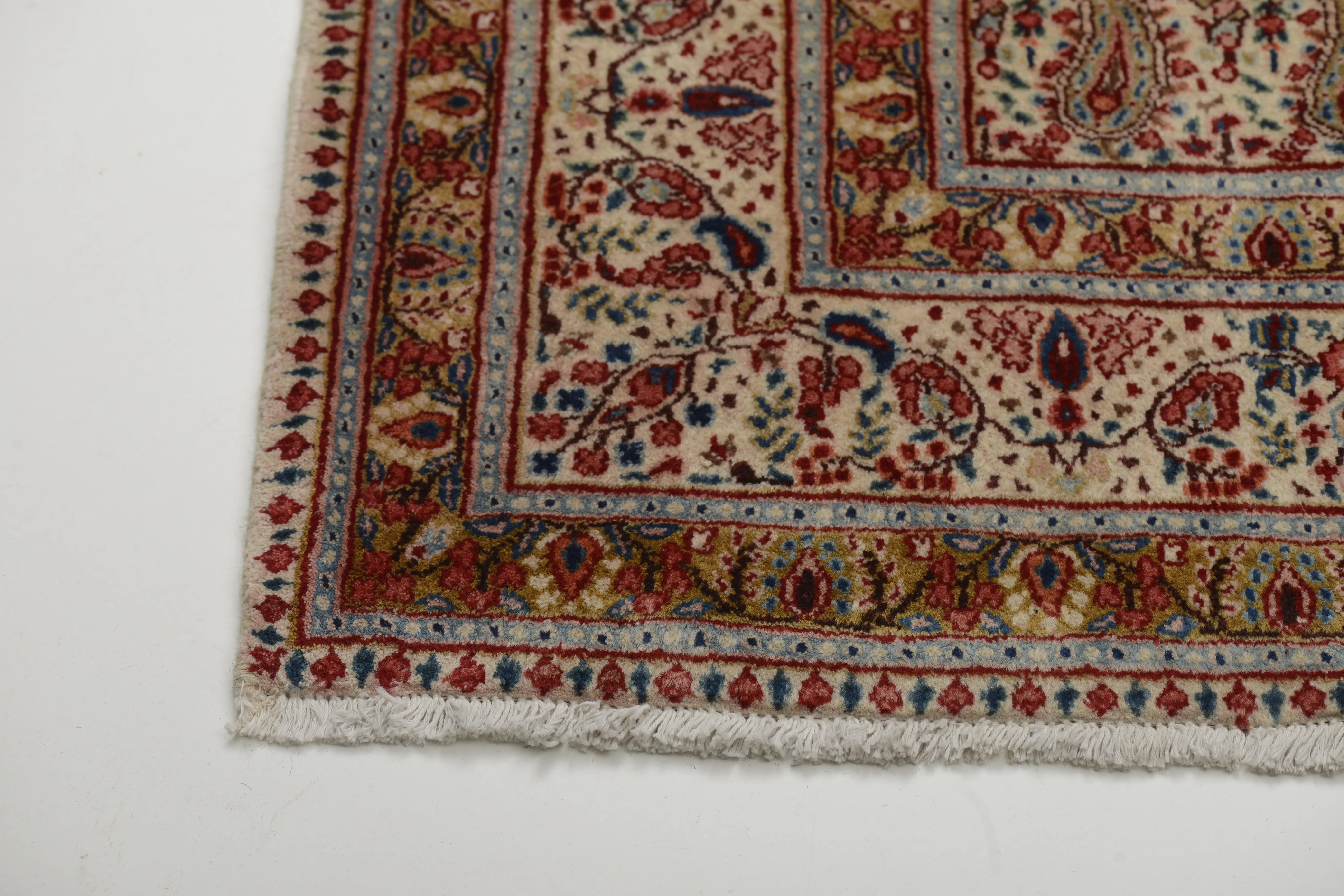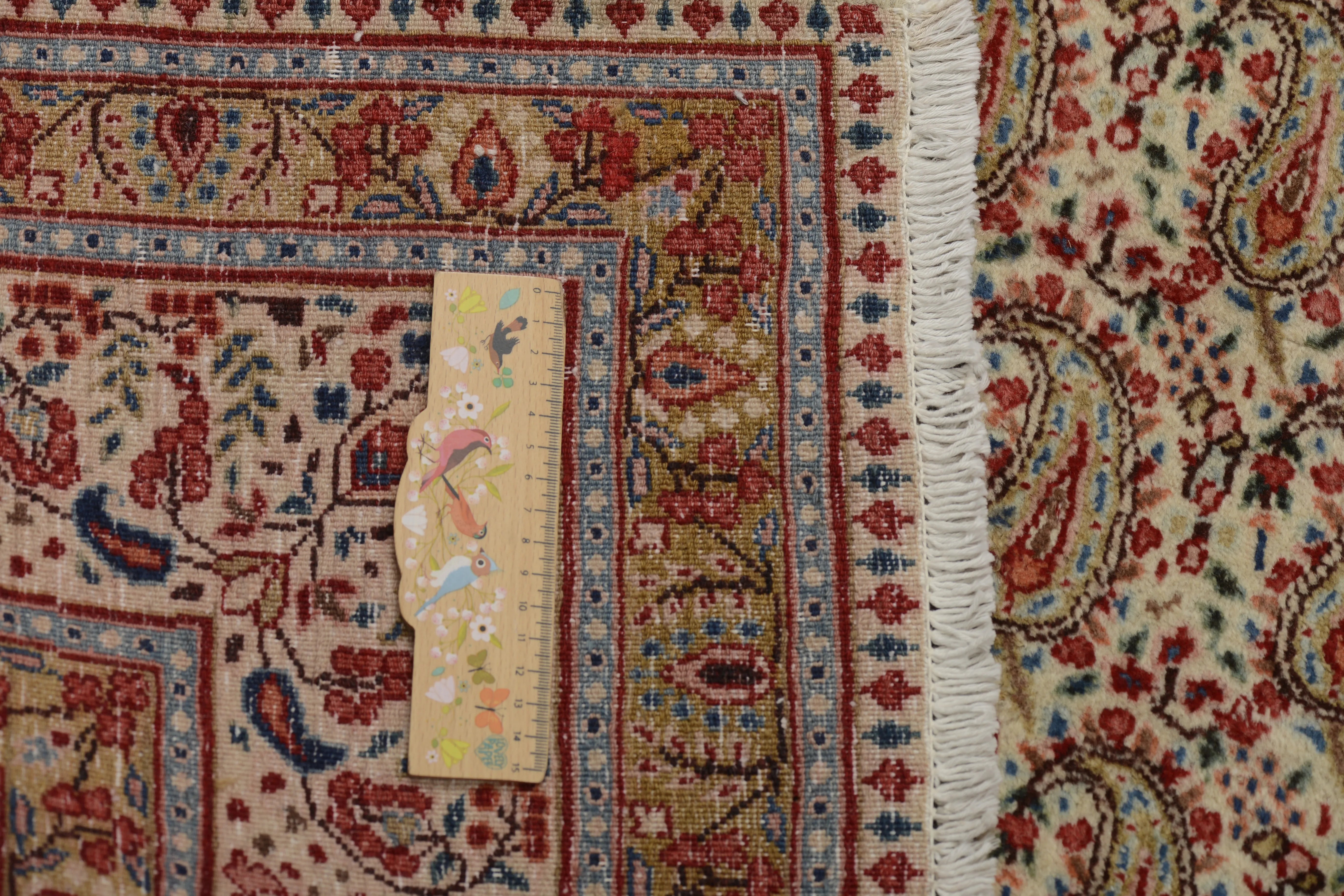Moud rugs, also known as Mood rugs, are hand-knotted rugs traditionally made in the city of Moud (also spelled Mood) in the Khorasan province of northeastern Persia. These rugs are renowned for their high quality and skilled craftsmanship, which has made them popular both in Iran and internationally. Moud rugs are typically woven from high-quality wool from sheep grazing in the Moud area. The wool is known for its softness and durability. Some Moud rugs may also contain silk threads, especially in the details of the pattern or to add e x tra sheen and life to the rug. The rugs are hand-knotted using traditional techniques that have been passed down from generation to generation in the area. Typical patterns on Moud rugs include flowers, plants, and geometric figures. Rosettes and medallions are also common in the design. The color palette is often rich and includes traditional colors such as red, blue, green, and beige. Moud rugs are known for their elegance and fine craftsmanship. They possess a classic Oriental style that fits both traditional and modern home environments. The rugs are usually medium to small in size and work well in living rooms, bedrooms, and other spaces. On the international market, Moud rugs are sought after for their high quality and artistic value. They are often seen as investment pieces due to their durability and beauty.