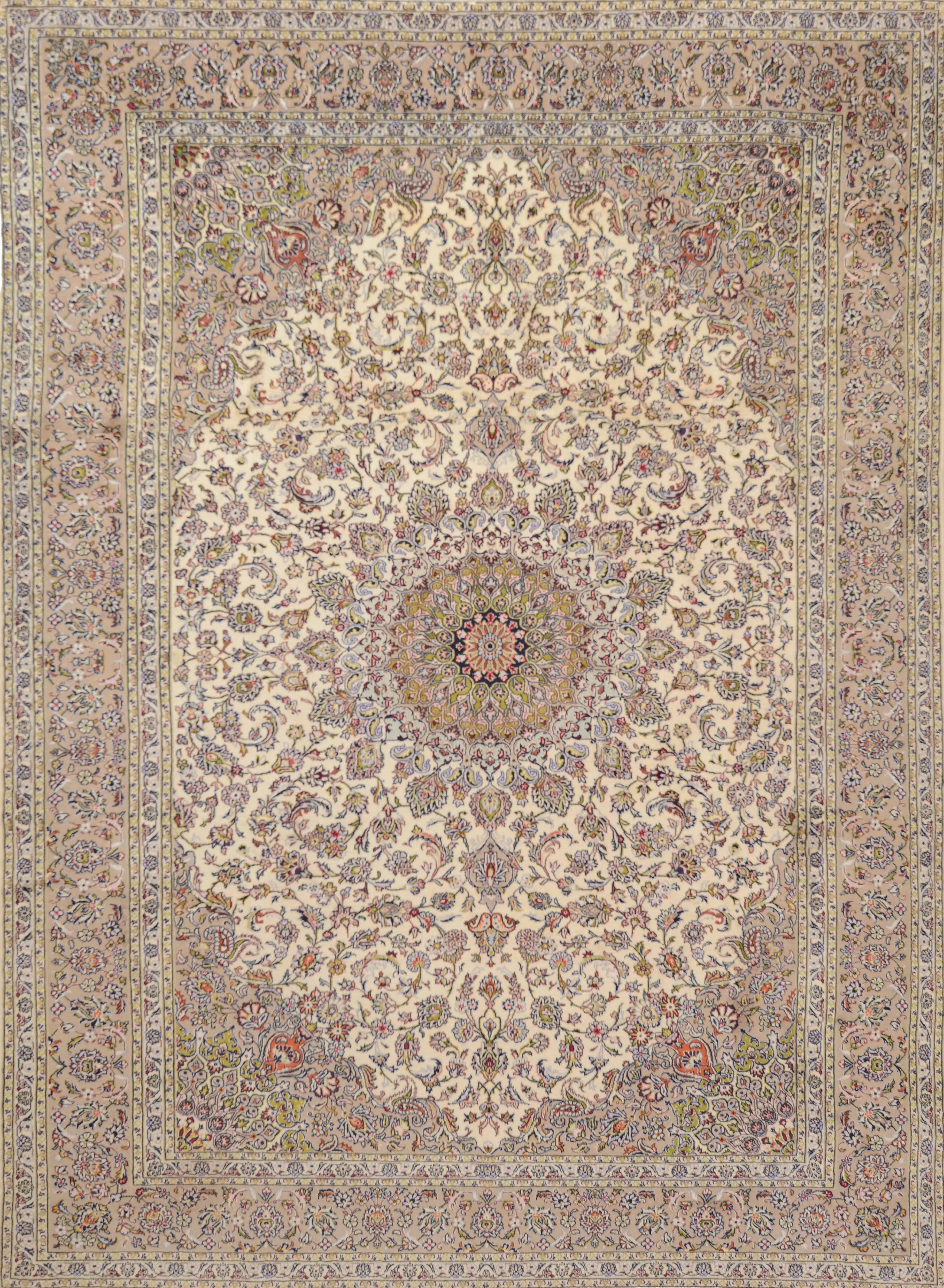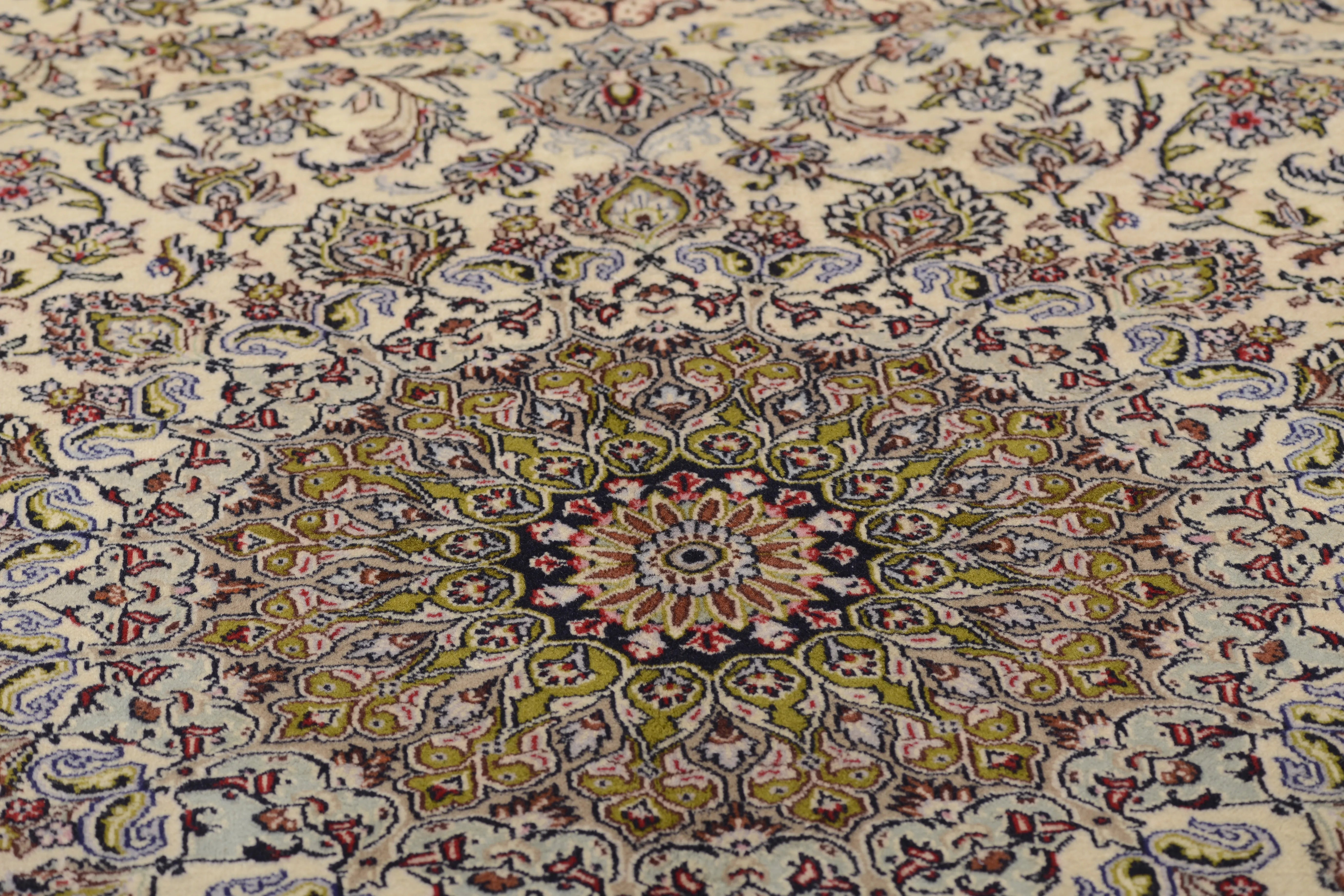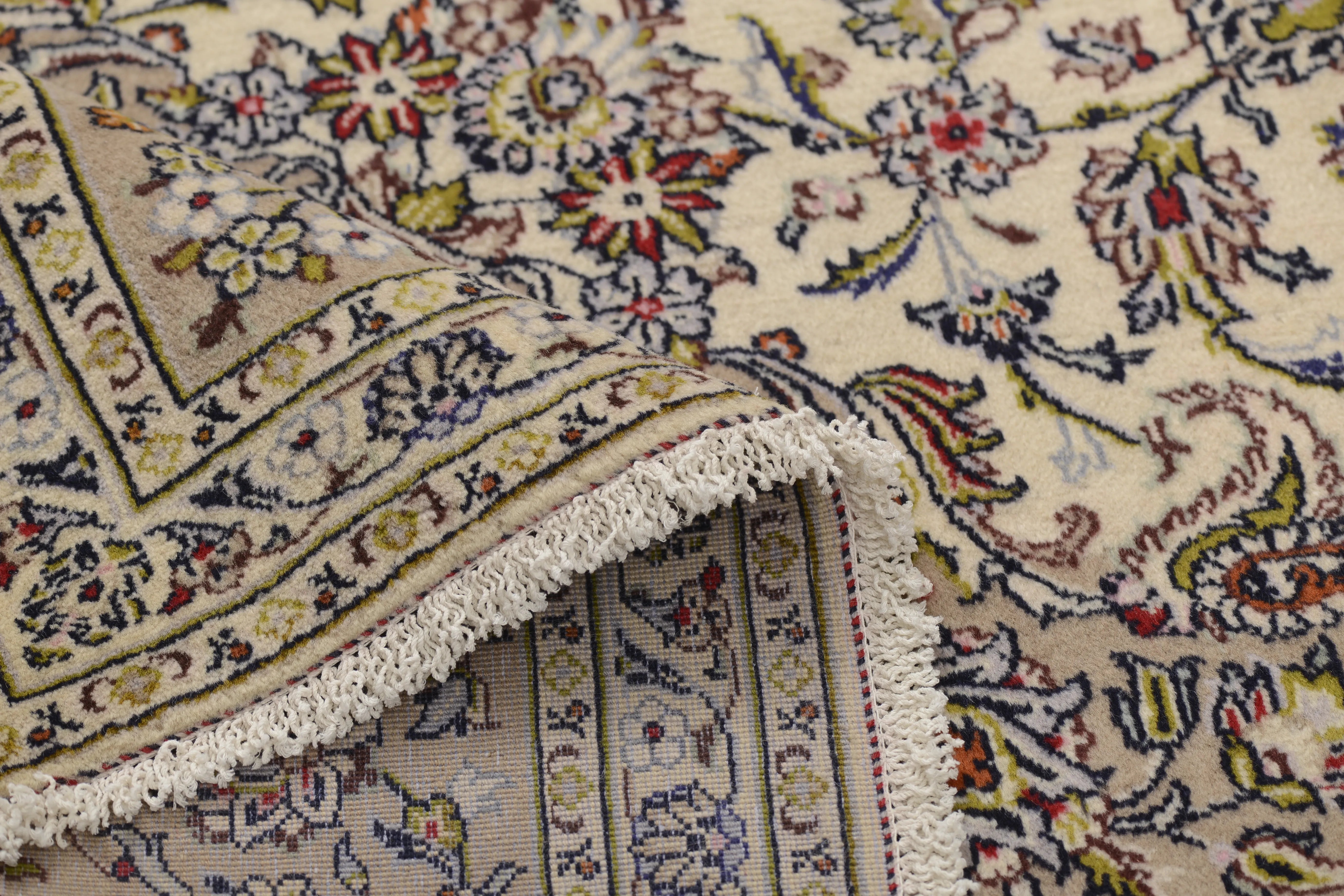 Kashan (or Keshan) rugs are truly an e x ample of the finest in Persian rug artistry. They offer a combination of beauty, durability, and cultural value. If you're considering purchasing a Kashan rug, you can be sure that you're investing in a piece of Iranian culture and history that will bring joy and beauty for many years to come. Kashan rugs are hand-knotted with great precision and adhere to traditional weaving techniques that have developed over centuries. The rugs are known for their high knot density and intricate details. Kashan rugs often feature comple x patterns including large central medallions, flowers, arabesques, and stylized plant motifs. The patterns are often symmetrical and have a harmonious design that reflects traditional Persian art. The most commonly used colors in Kashan rugs are red, blue, ivory, and beige. These colors are often combined to create a rich and contrasting palette. The colors are traditionally made with natural dyes, giving them their deep and lasting appearance. Most Kashan rugs are made from high-quality wool, which provides a soft and durable surface. Some of the more e x clusive ones may also contain silk to add e x tra luster and richness in detail. The base of the rugs is usually made of cotton, which provides stability and structure to the rug. Kashan rugs are known for their high knot density, which makes them dense and durable. This high knot density allows for the creation of very detailed patterns and contributes to the rug's longevity. Kashan rugs are available in a variety of sizes, from small prayer rugs to large room-sized rugs. They are popular both for home use and as decorative items in public spaces. Kashan rugs are an important part of Iran's cultural heritage and represent a long tradition of artistic e x pression and craftsmanship. They are often an e x pression of local culture and aesthetics and are considered a form of artwork. Many Kashan rugs have historically been made for royal courts and wealthy merchants, which marks them as symbols of lu x ury and status. They are still highly sought after both as collectibles and for decoration in e x clusive settings. Kashan rugs are often e x pensive due to their high quality and aesthetic value.