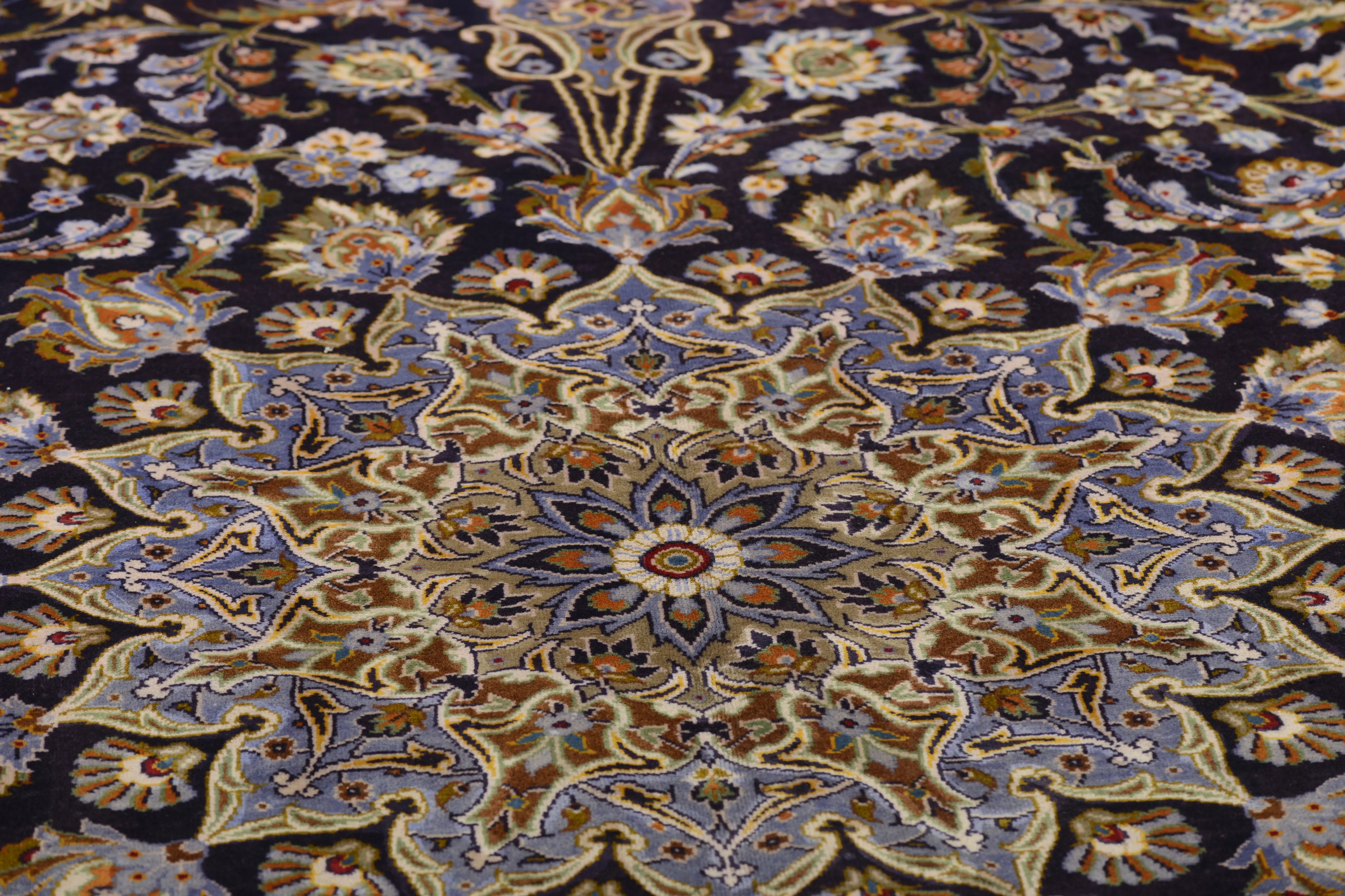 Kashan (or Keshan) rugs are truly an e x ample of the finest in Persian rug artistry. They offer a combination of beauty, durability, and cultural value. If you're considering purchasing a Kashan rug, you can be sure that you're investing in a piece of Iranian culture and history that will bring joy and beauty for many years to come. Kashan rugs are hand-knotted with great precision and adhere to traditional weaving techniques that have developed over centuries. The rugs are known for their high knot density and intricate details. Kashan rugs often feature comple x patterns including large central medallions, flowers, arabesques, and stylized plant motifs. The patterns are often symmetrical and have a harmonious design that reflects traditional Persian art. The most commonly used colors in Kashan rugs are red, blue, ivory, and beige. These colors are often combined to create a rich and contrasting palette. The colors are traditionally made with natural dyes, giving them their deep and lasting appearance. Most Kashan rugs are made from high-quality wool, which provides a soft and durable surface. Some of the more e x clusive ones may also contain silk to add e x tra luster and richness in detail. The base of the rugs is usually made of cotton, which provides stability and structure to the rug. Kashan rugs are known for their high knot density, which makes them dense and durable. This high knot density allows for the creation of very detailed patterns and contributes to the rug's longevity. Kashan rugs are available in a variety of sizes, from small prayer rugs to large room-sized rugs. They are popular both for home use and as decorative items in public spaces. Kashan rugs are an important part of Iran's cultural heritage and represent a long tradition of artistic e x pression and craftsmanship. They are often an e x pression of local culture and aesthetics and are considered a form of artwork. Many Kashan rugs have historically been made for royal courts and wealthy merchants, which marks them as symbols of lu x ury and status. They are still highly sought after both as collectibles and for decoration in e x clusive settings. Kashan rugs are often e x pensive due to their high quality and aesthetic value.