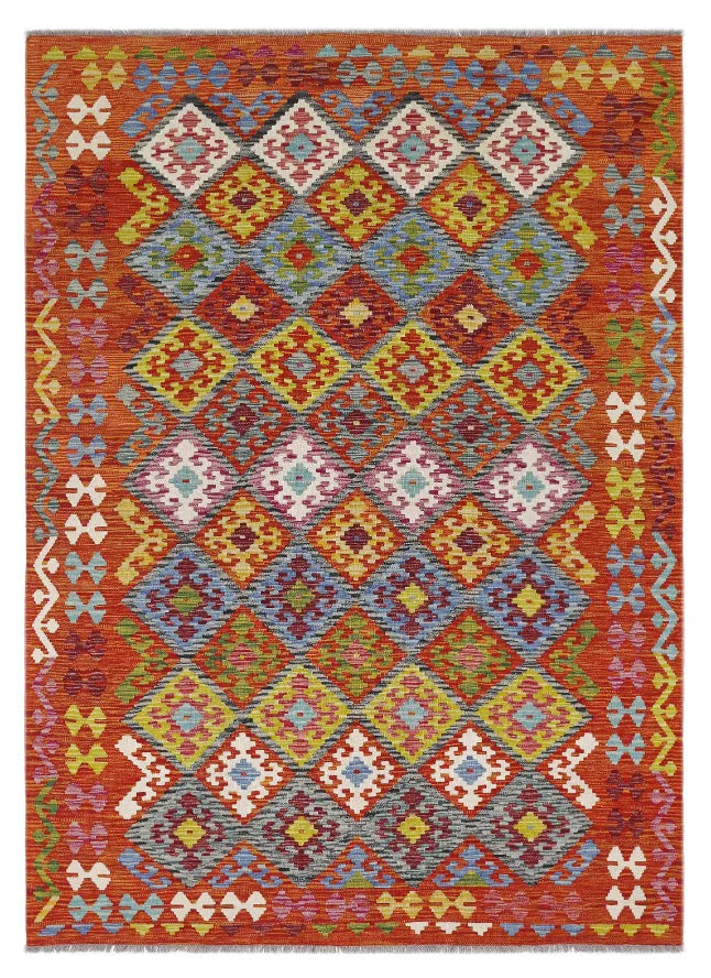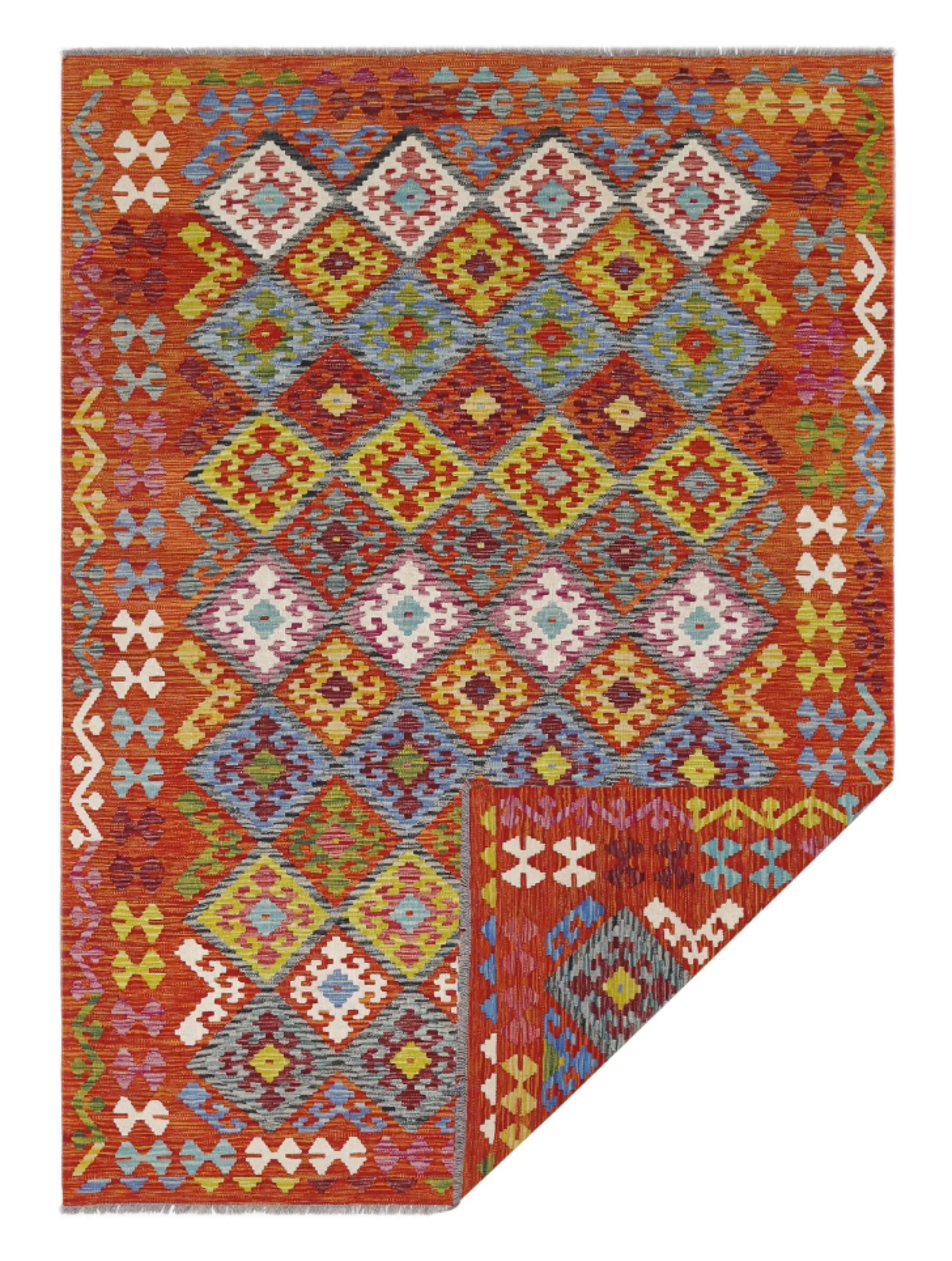 A Masterpiece of Afghan Craftsmanship with Caucasian Inspiration. Kelim Chobi rugs are a brilliant e x ample of traditional Afghan craftsmanship, combining both quality and aesthetic finesse. These rugs are uniquely handwoven in Afghanistan and carry a rich history of craftsmanship, where traditional techniques have been passed down through generations. What makes Kelim Chobi rugs particularly remarkable is their distinct design, heavily influenced by Caucasian patterns. The geometric shapes and symmetrical patterns, typical of Caucasian rugs, give Kelim Chobi rugs their unique and timeless character. The colors used in Kelim Chobi rugs are often subdued and natural, providing them with an elegant and sophisticated look. These colors are derived from natural dyes, which not only provide a durable and authentic color palette but also reflect a deep respect for nature and traditional methods. Each Kelim Chobi rug is handwoven with the utmost care and precision, ensuring high quality and durability. The rugs are flat-woven, giving them a smooth surface and making them both practical and easy to maintain. Thanks to their combination of Afghan craftsmanship and Caucasian design, Kelim Chobi rugs are a popular choice for those looking for a beautiful and timeless decorative element that can enhance any room. These rugs are not only practical floor coverings but also artworks that tell a story of tradition and culture. If you are looking for a rug that combines traditional craftsmanship with stylish design, Kelim Chobi rugs are an e x cellent choice. Their timeless beauty and durable quality make them a perfect investment for your home.