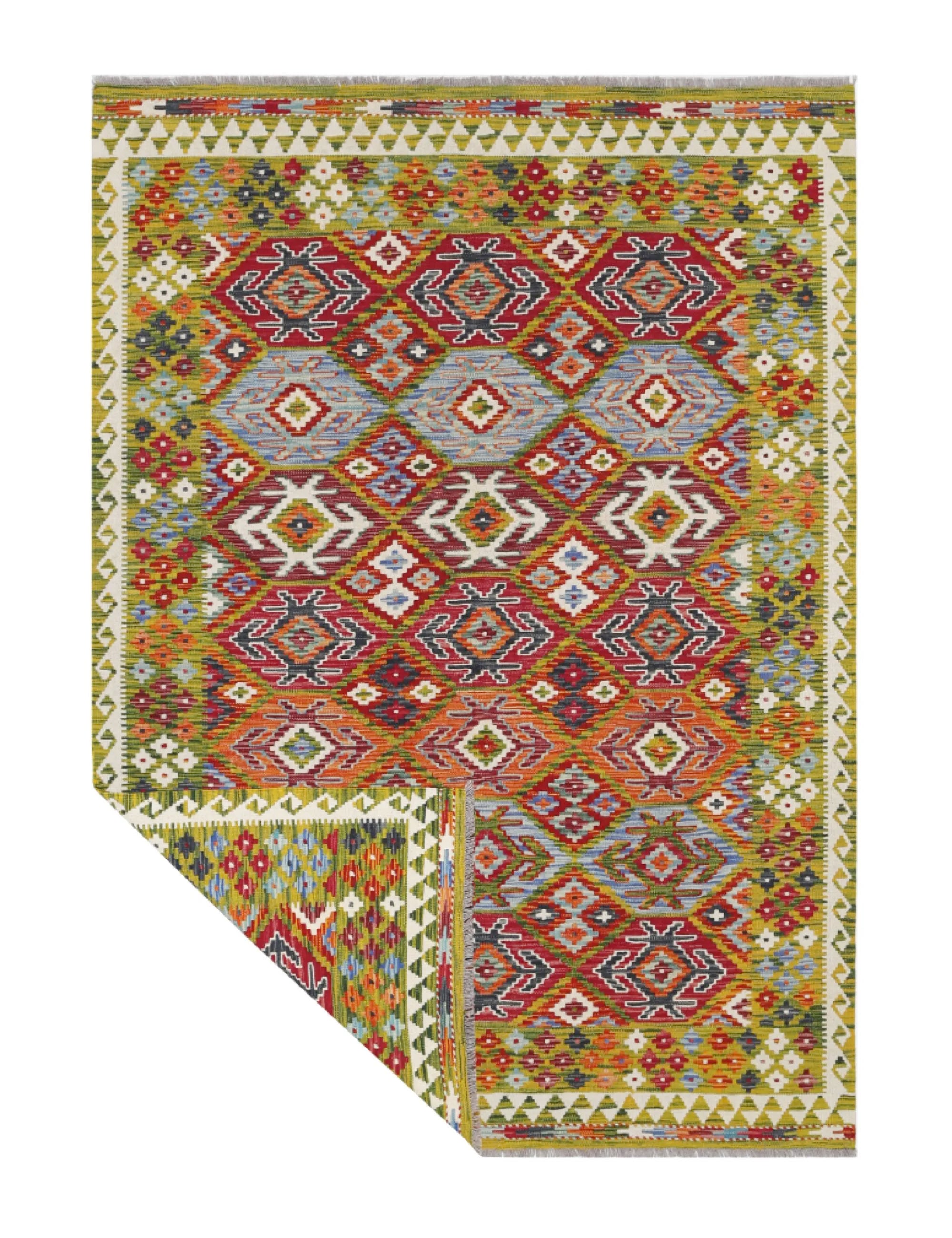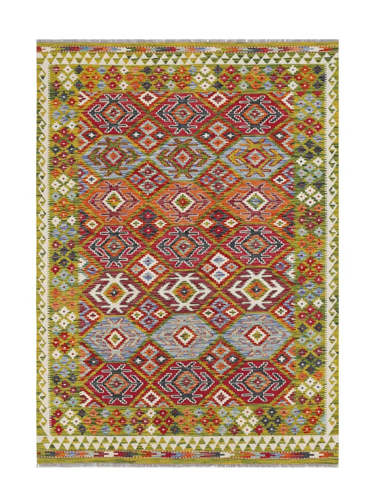 A Masterpiece of Afghan Craftsmanship with Caucasian Inspiration. Kelim Chobi rugs are a brilliant e x ample of traditional Afghan craftsmanship, combining both quality and aesthetic finesse. These rugs are uniquely handwoven in Afghanistan and carry a rich history of craftsmanship, where traditional techniques have been passed down through generations. What makes Kelim Chobi rugs particularly remarkable is their distinct design, heavily influenced by Caucasian patterns. The geometric shapes and symmetrical patterns, typical of Caucasian rugs, give Kelim Chobi rugs their unique and timeless character. The colors used in Kelim Chobi rugs are often subdued and natural, providing them with an elegant and sophisticated look. These colors are derived from natural dyes, which not only provide a durable and authentic color palette but also reflect a deep respect for nature and traditional methods. Each Kelim Chobi rug is handwoven with the utmost care and precision, ensuring high quality and durability. The rugs are flat-woven, giving them a smooth surface and making them both practical and easy to maintain. Thanks to their combination of Afghan craftsmanship and Caucasian design, Kelim Chobi rugs are a popular choice for those looking for a beautiful and timeless decorative element that can enhance any room. These rugs are not only practical floor coverings but also artworks that tell a story of tradition and culture. If you are looking for a rug that combines traditional craftsmanship with stylish design, Kelim Chobi rugs are an e x cellent choice. Their timeless beauty and durable quality make them a perfect investment for your home.
